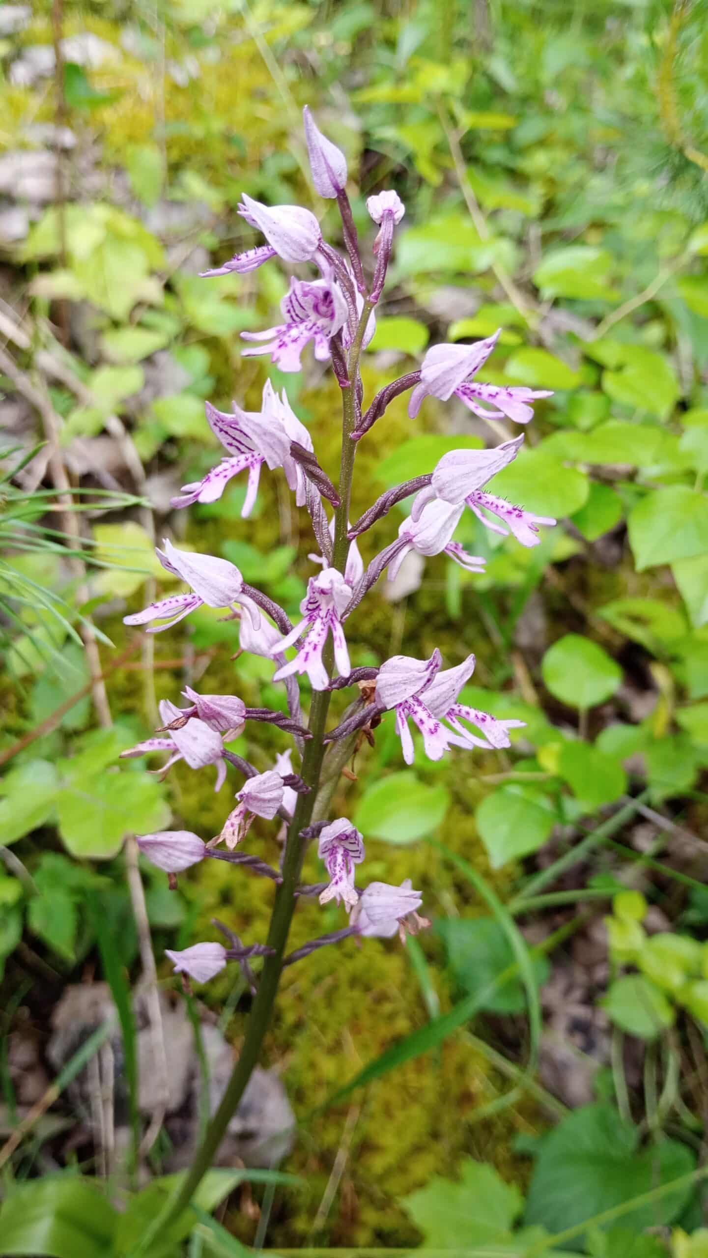 Das Helm-Knabenkraut (Orchis militaris) ist eine sommergrüne, ausdauernde krautige Pflanze, die Wuchshöhen von 20 bis 50 Zentimetern erreicht (gelegentlich werden kräftige Exemplare auch über 60 Zentimeter hoch). Namensgebend ist der “Helm”, der durch die nahezu vollständig verwachsenen Perigonblätter des äußeren Kreises entsteht. Die Lippe ist stark dreilappig und etwa 10 bis 20 Millimeter lang. Das Helm-Knabenkraut ist eine seltene Orchidee, die auf kalkhaltigen Böden wächst und durch Wildschweine und Lebensraumverlust bedroht ist.